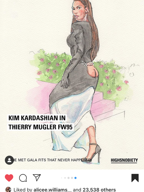 For Kim Kardashian, a vintage Mulger piece seemed fitting, and definitely in keeping with her recent Met Gala efforts. I just love the illustrations and how well the outfits drape on the celebrities bodies.